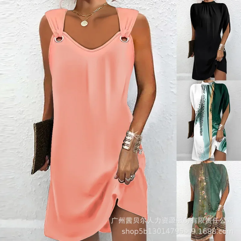 women summer dress flare sleeve v neck boho short mini dress evening party beach dresses vestidos sundress, Black;gray