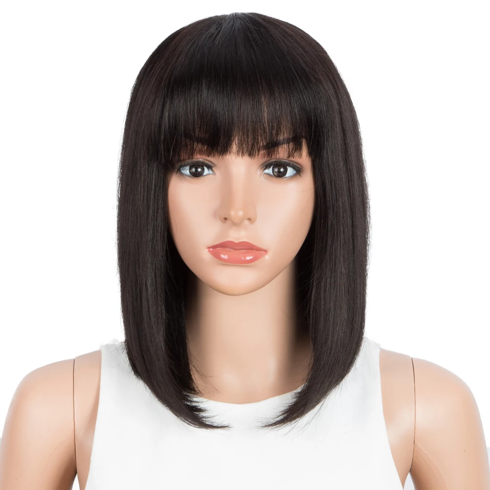 Прямой парик Боб с челкой, парик из человеческих волос для черных женщин, короткие бразильские человеческие волосы без повреждений, парики ...