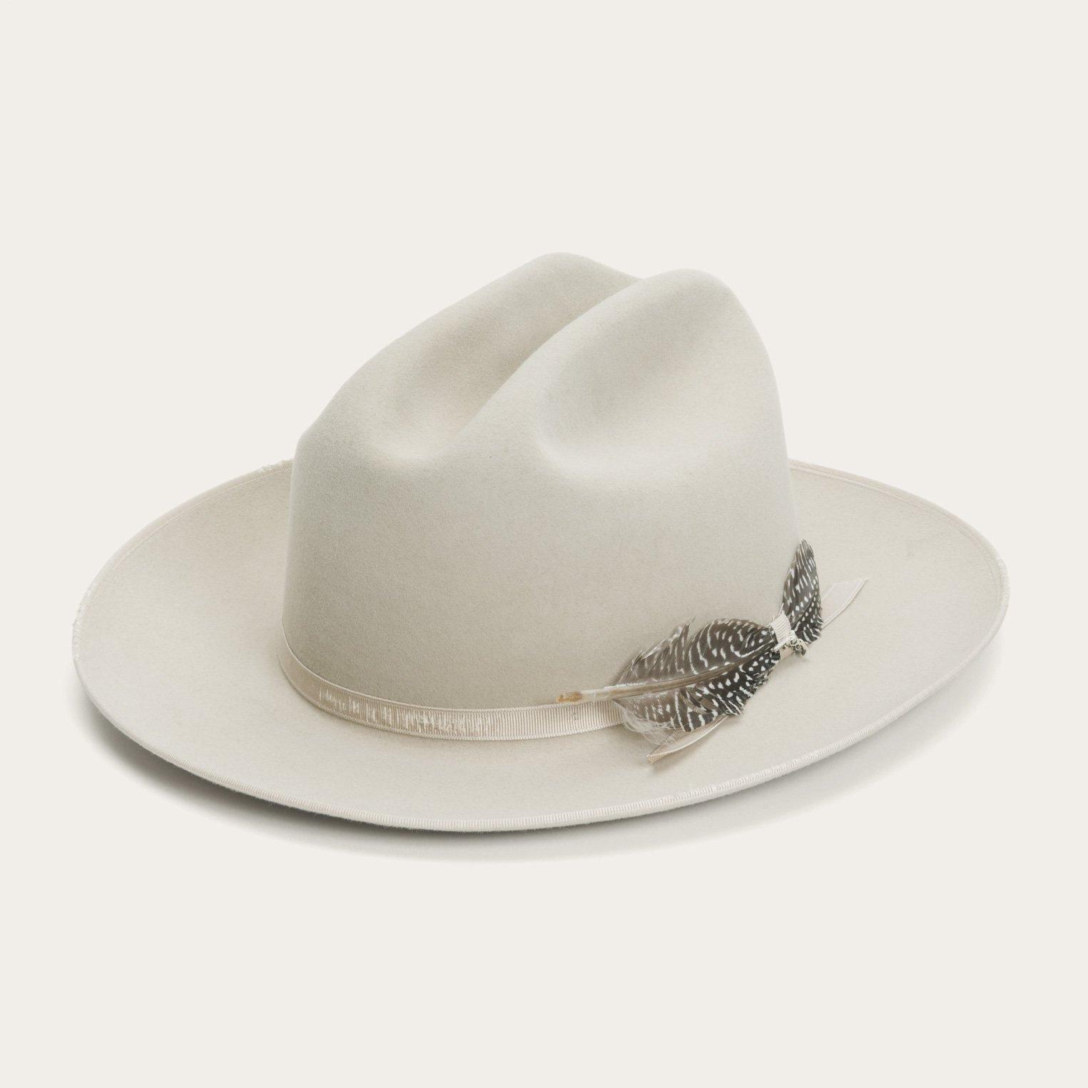 Прямой цилиндр в западном стиле из чистой шерсти Винтажная шерстяная шляпа с украшениями из перьев L(58-60cm) бежевый