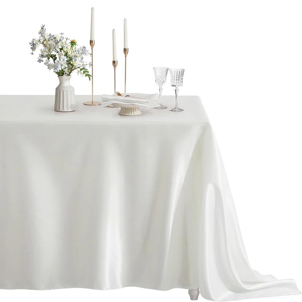 Прямоугольная атласная скатерть, свадебная скатерть, белая, черная, для вечеринки, дня рождения, банкета, декора, домашнего ужина, скатерти 145x305cm белый