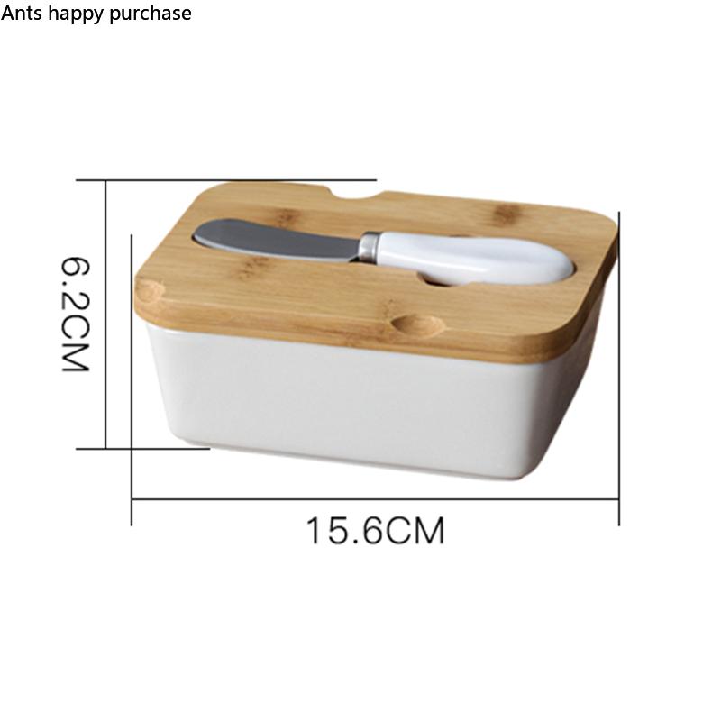 Прямоугольная керамическая тарелка для масла с деревянной крышкой, нож для масла, кухонная сырница, поднос для закусок, салатница, сырная коробка, декоративная тарелка