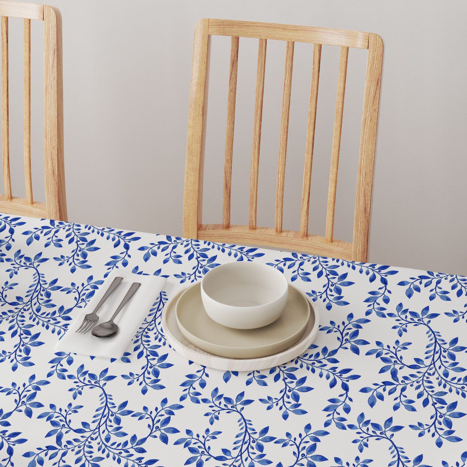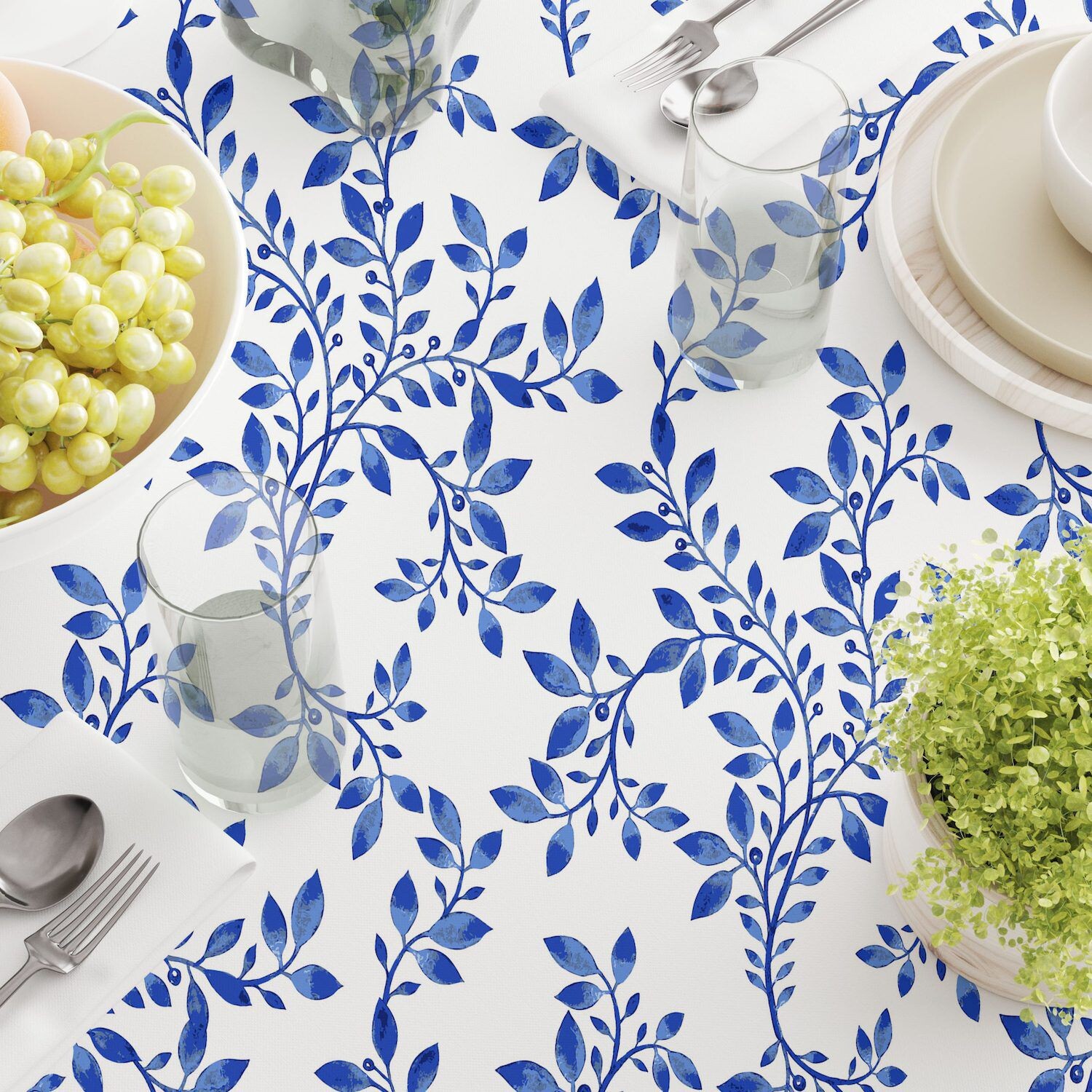 Прямоугольная скатерть, 100 % хлопок, 52x104 дюйма, Swirly Blue Vines.