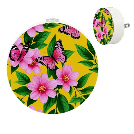 YZUOUZY Night Light Bedroom Lamp Bedside Lamps Set of 2 Pink Orchids Butterflies Leaves Palm