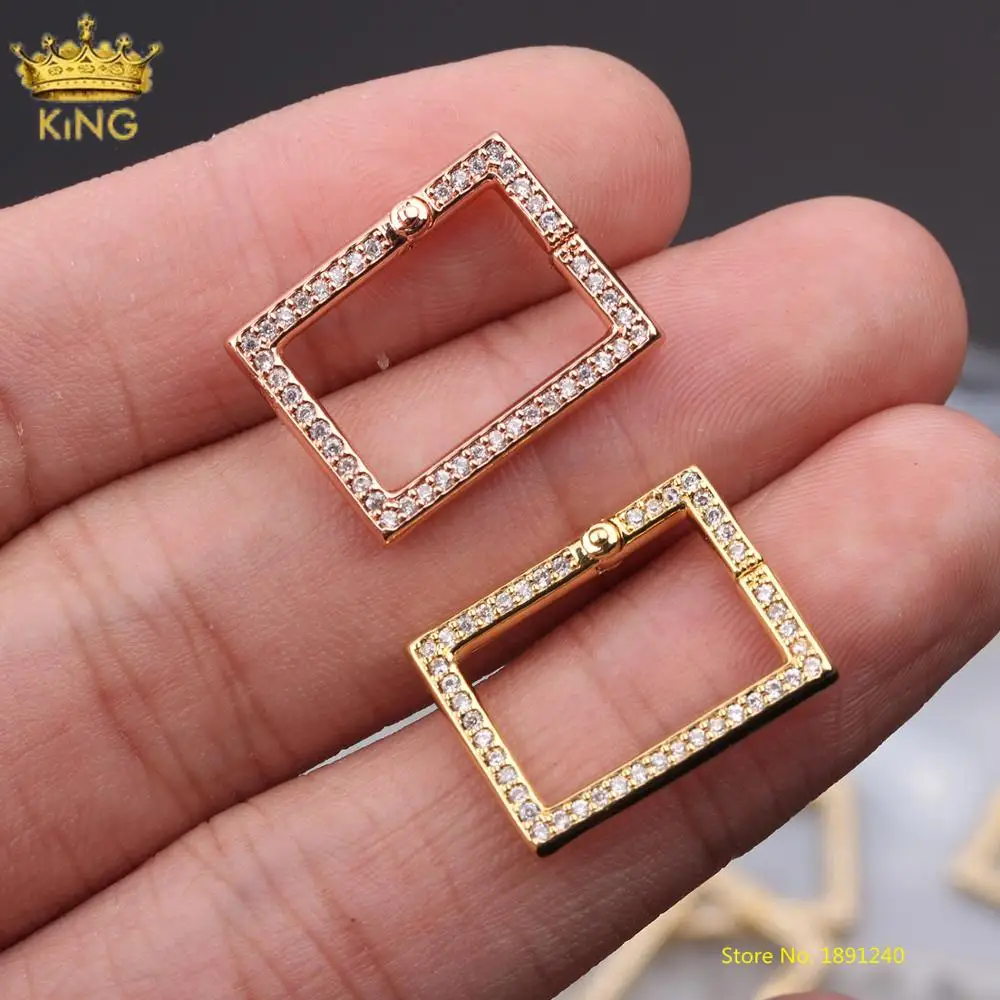 Прямоугольные застежки для ювелирных изделий, розовое золото, инкрустация цирконием, 5 шт.