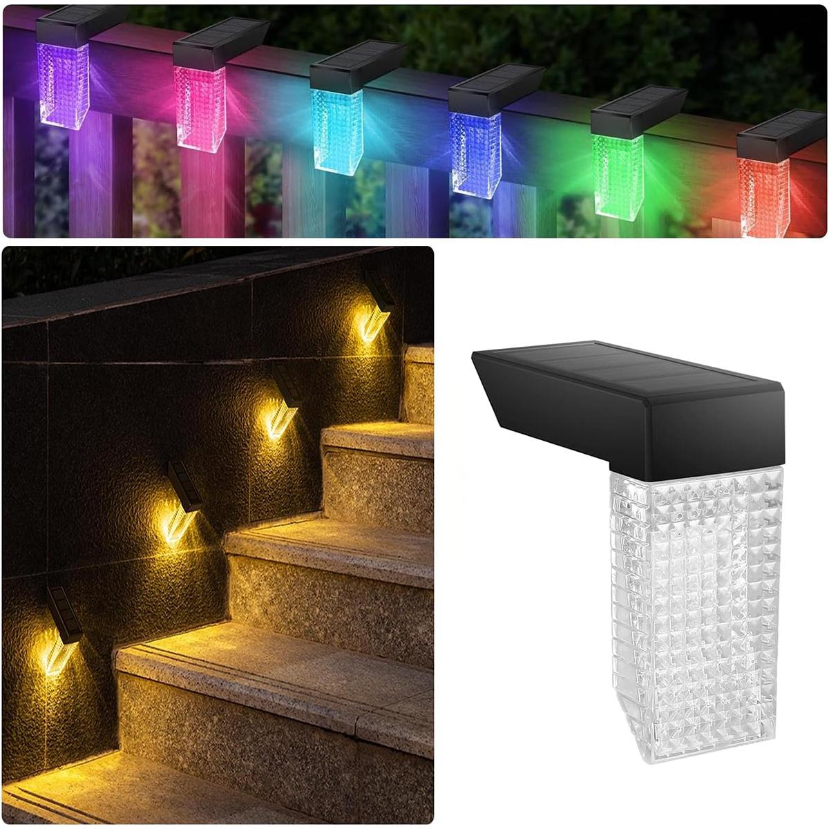 Прямоугольные солнечные палубные светильники, водонепроницаемые светодиодные лампочки RGB и теплый белый 1,2 В 2,4 Вт, ABS, Pc, лампа с питанием от ПК, интеллектуальная дорожка для улицы RGB&Warm