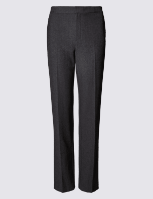Прямые брюки с высокой посадкой на талии и эластаном, Уголь