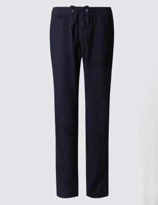 Прямые брюки с эластичным поясом на талии, Темно-синий
