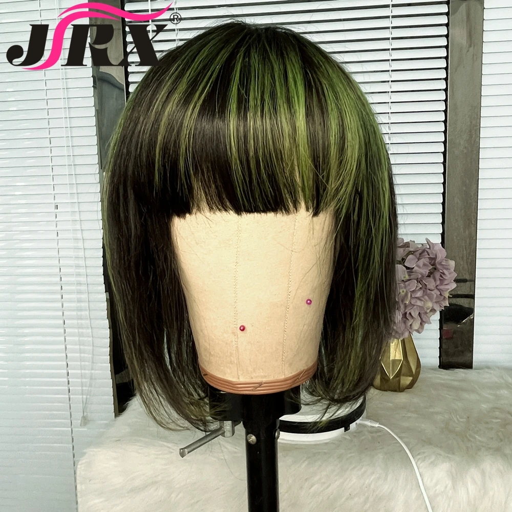 Прямые парики из человеческих волос перуанского зеленого цвета с челкой