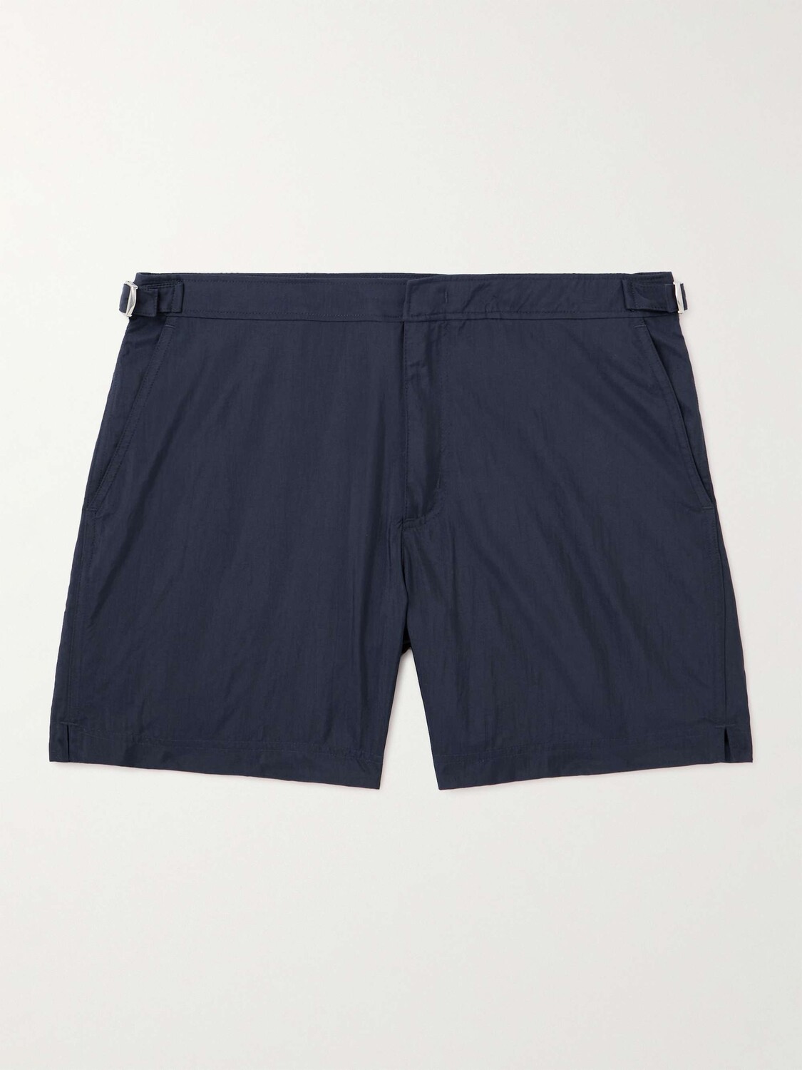 Прямые плавки средней длины с аппликацией логотипа INCOTEX, синий