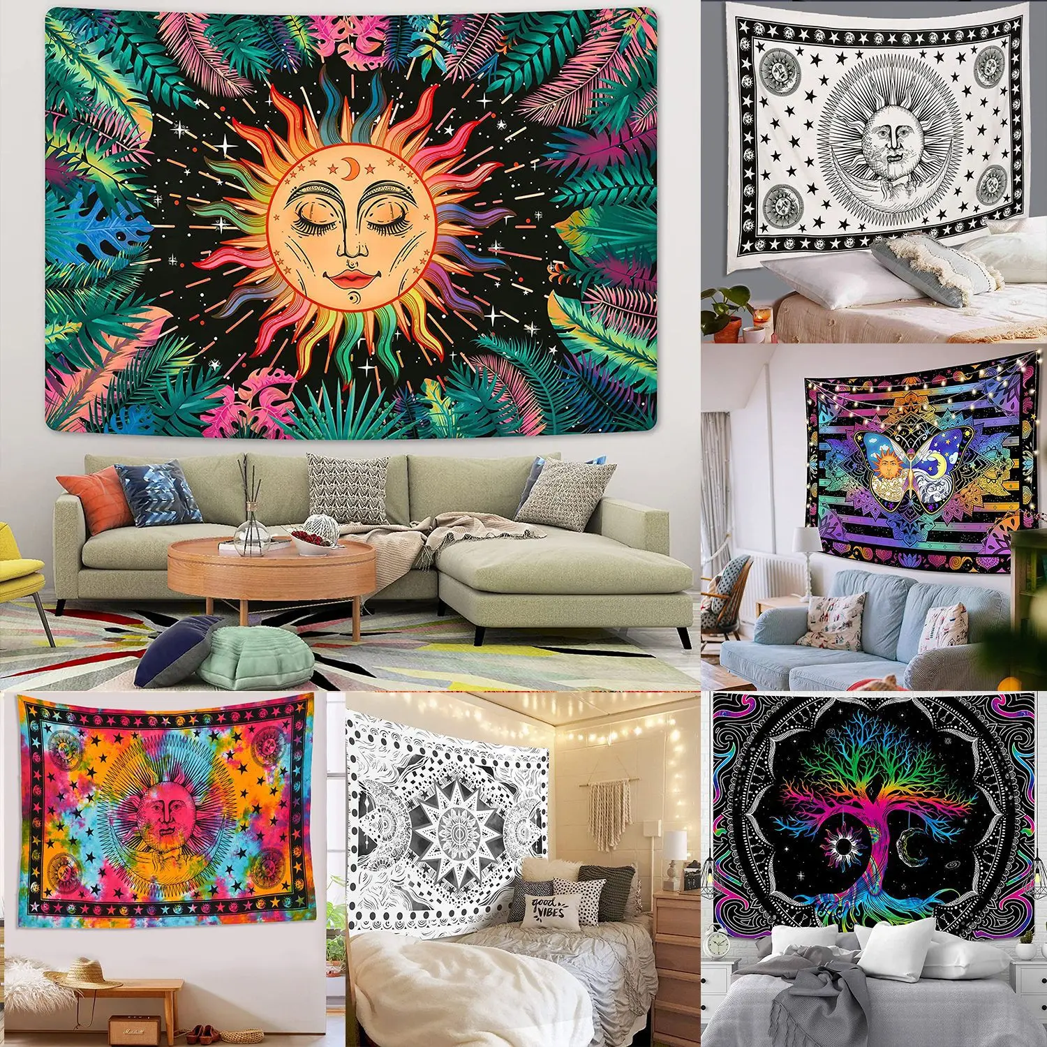 Психоделический гобелен в виде грибов, сказочный гобелен с растениями, настенный гобелен, гобелен в виде Галактики, космоса, гобелен с изобр...