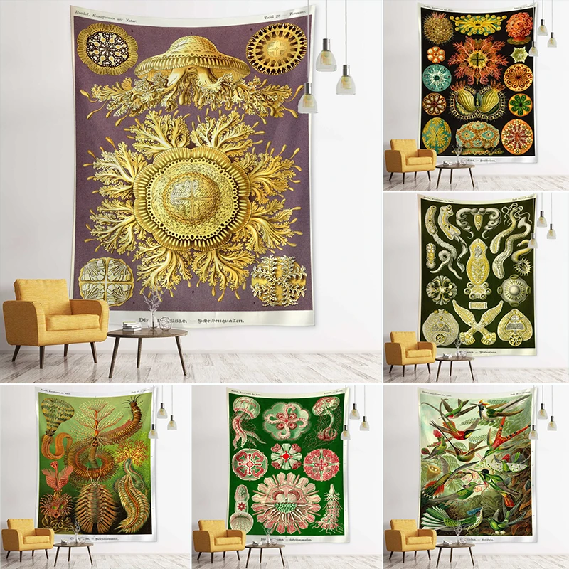 Психоделический гобелен для иллюстрации растений, настенная подвесная Карта Таро, хиппи, тапиз, эстетика, комната, общежитие, домашний деко...