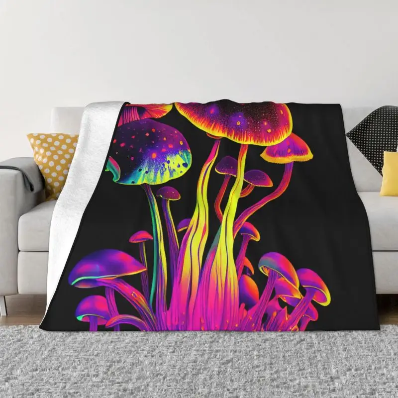 Психоделическое покрывало с грибами, теплое Фланелевое покрывало для дома, дивана, офиса, путешествий