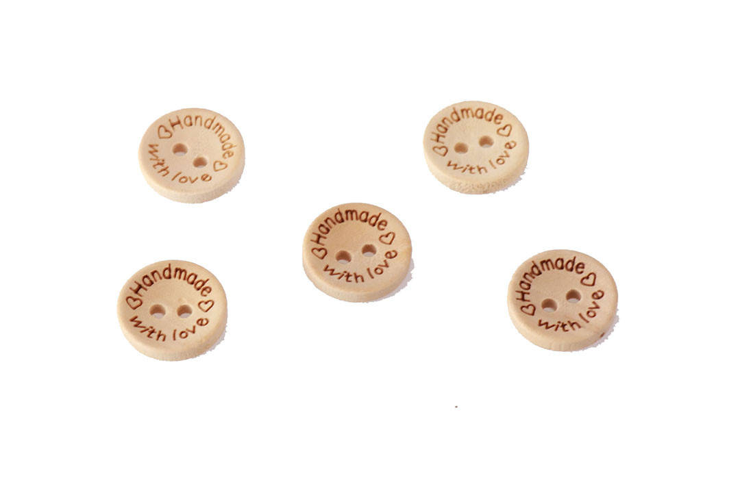 Пуговица деревянная круглая "With love - Hande Made", 15мм