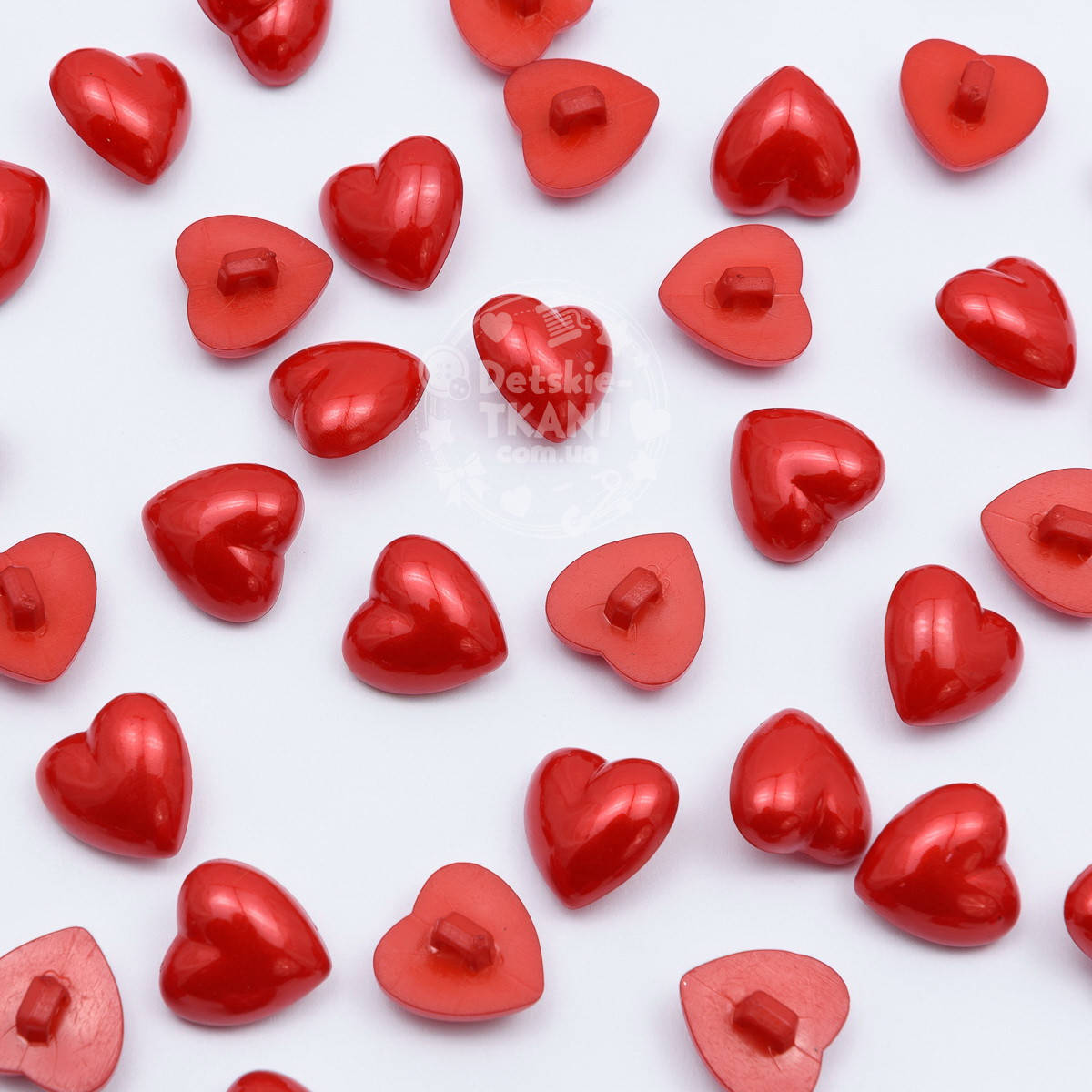 Пуговицы "Сердечко" красного цвета на ножке 15 мм, №036, Красный