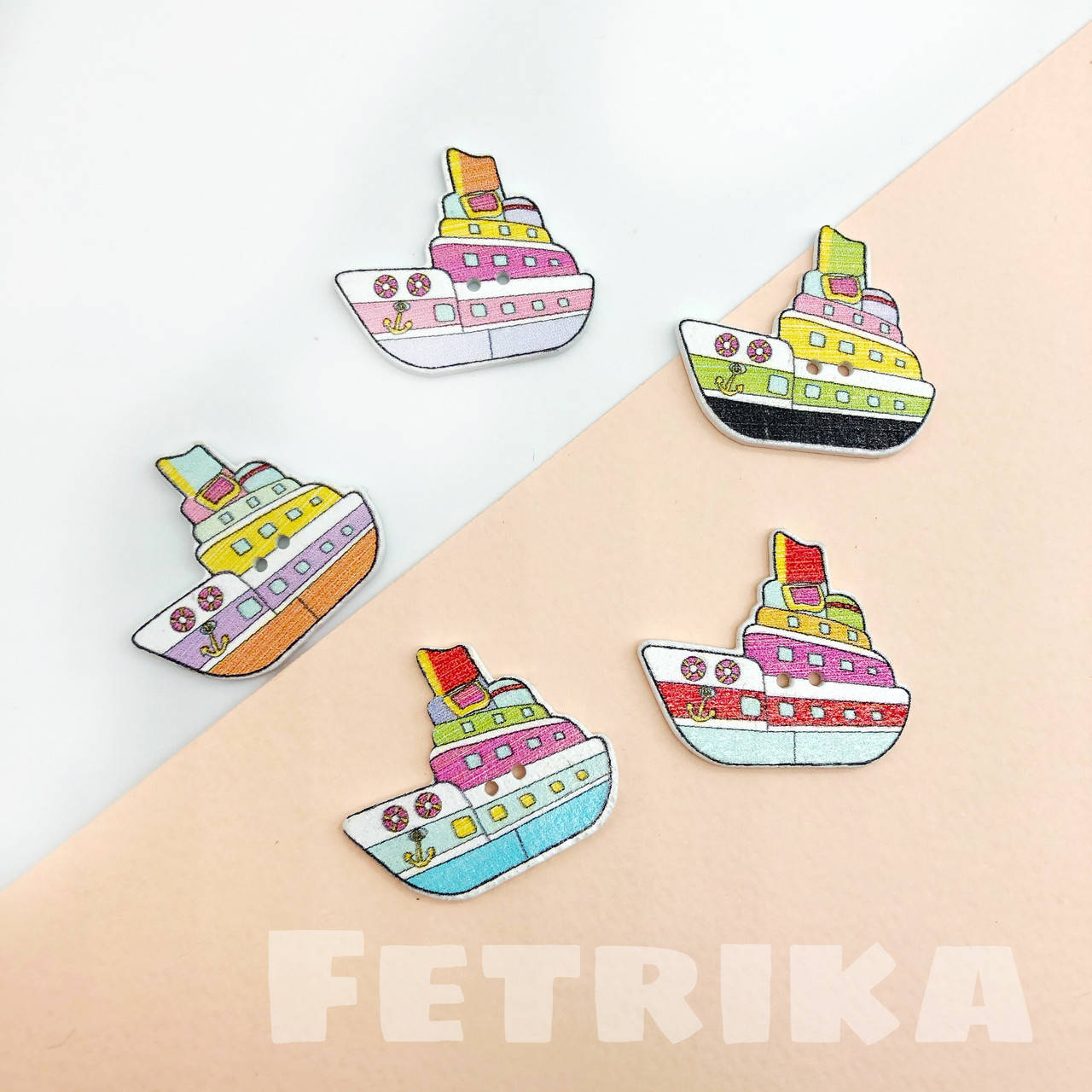 Пуговицы "Кораблики" деревянные:
