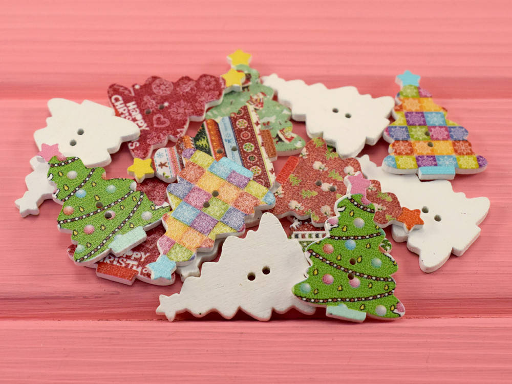Пуговки "Ёлочки скрап" деревянные (5 шт.), Разные цвета