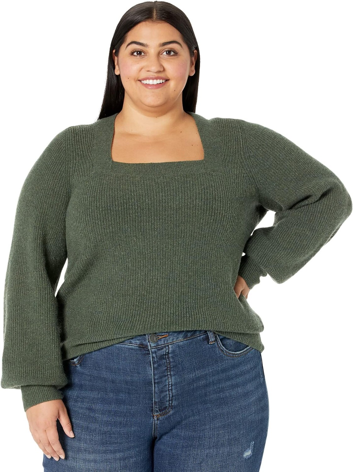 Пуловер в рубчик с квадратным вырезом Plus Kevin Madewell, цвет Heather Fatigue