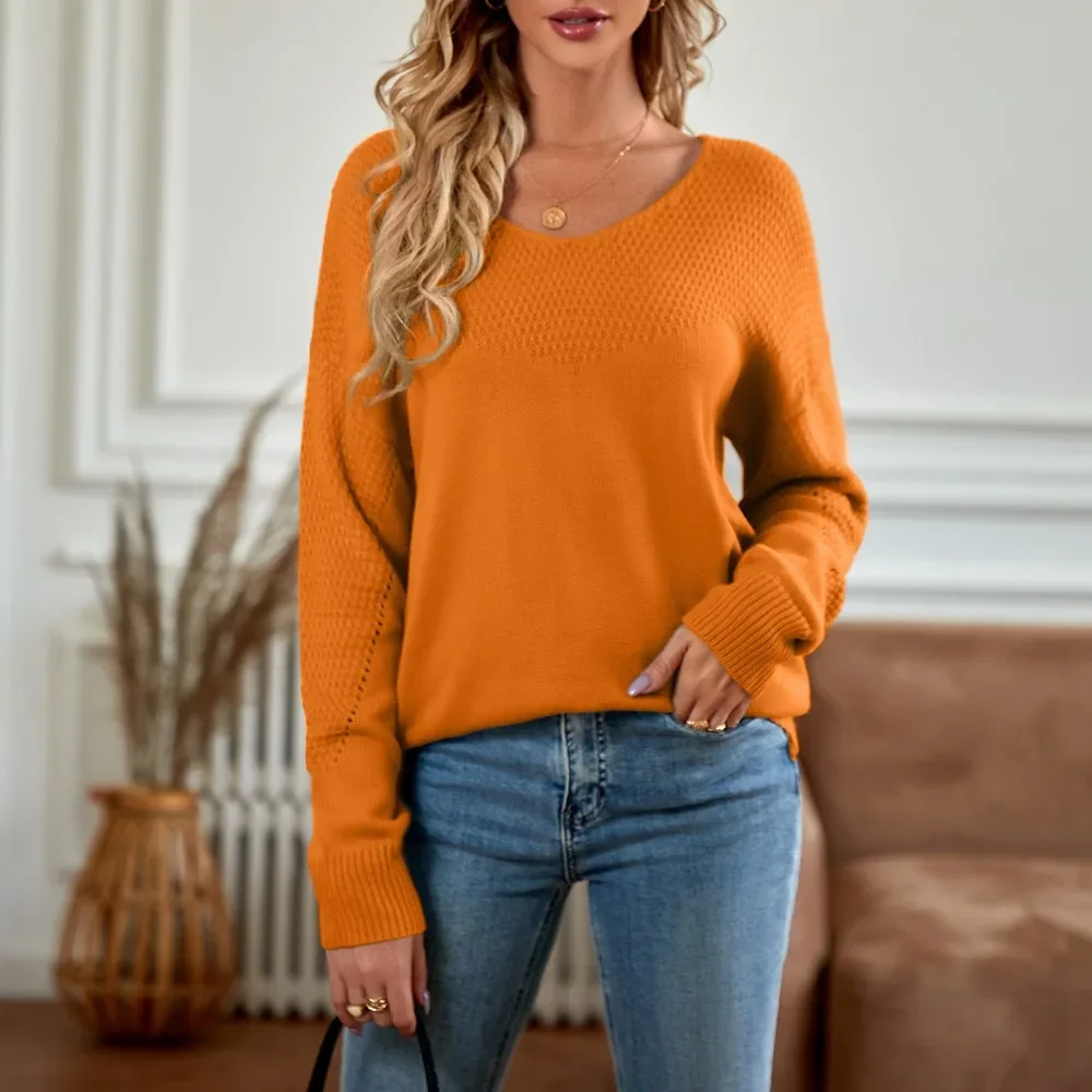 Пуловер женский зимний однотонный с V-образным вырезом, свободный трендовый свитер и джемпер, бежевый оранжевый модный топ