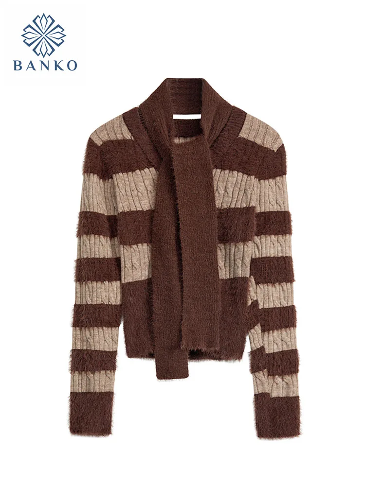Пуловер женский трикотажный в полоску, с V-образным вырезом