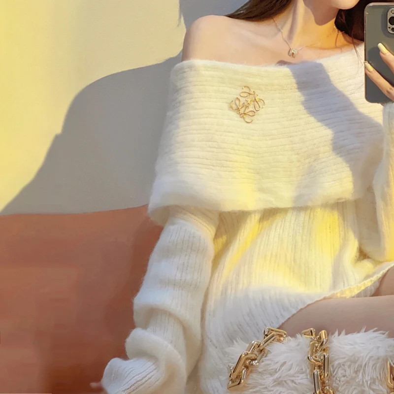 Пуловер женский трикотажный с воротником-лодочкой и длинным рукавом