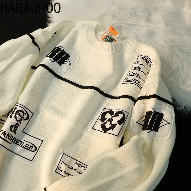 Пуловер с аппликацией букв Harajpoo для пар, новинка сезона весна-осень 2022, свободная вязаная женская одежда в стиле преппи, бойфренд, с круглым ...