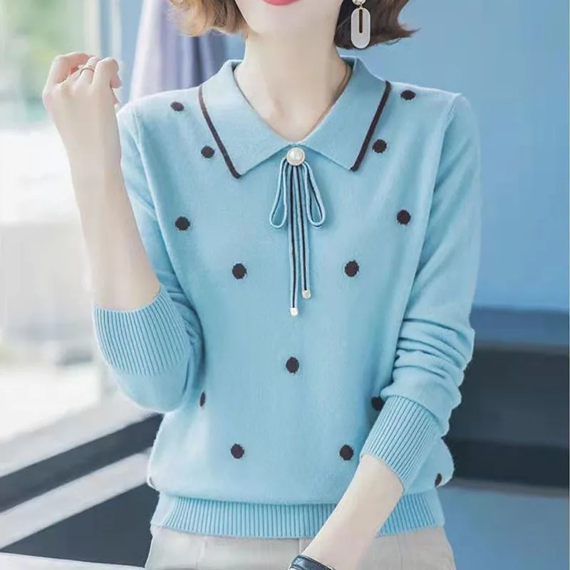 Пуловер с отложным воротником и принтом в горошек, несколько цветов