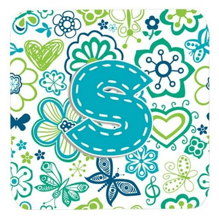 Carolines Treasures CJ2006-SFC Letter S Flowers And Butterflies Teal Blue Foam Coasters- Set Of 4