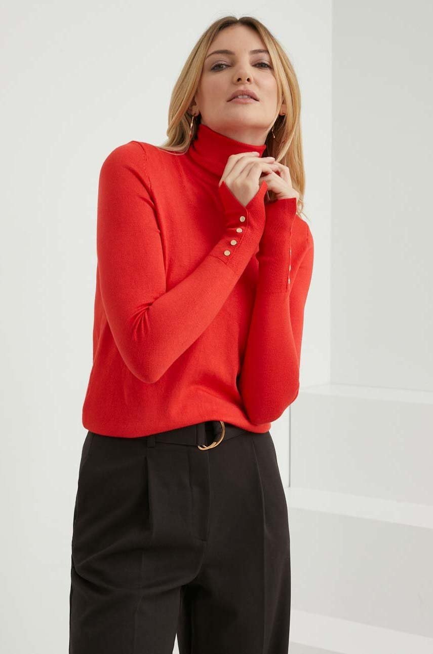 Пуловер Answear Lab дамски в червено от лека материя с поло, Червен