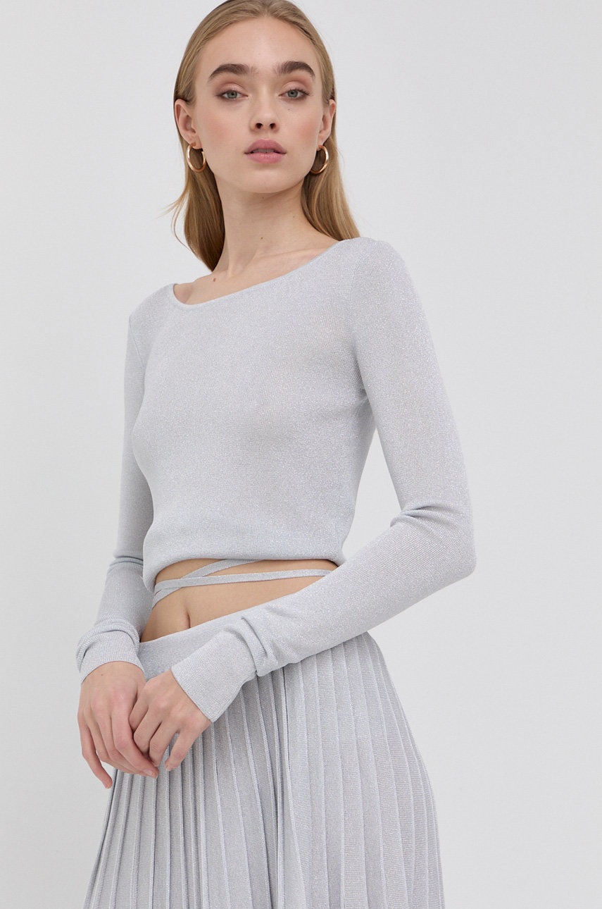 Пуловер Patrizia Pepe дамски в сребристо от лека материя, Сребърен