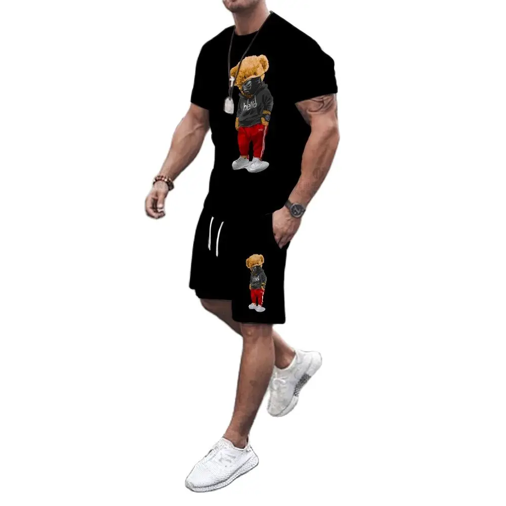 Мужская футболка с круглым вырезом и коротким рукавом, свободные шорты с 3D-принтом