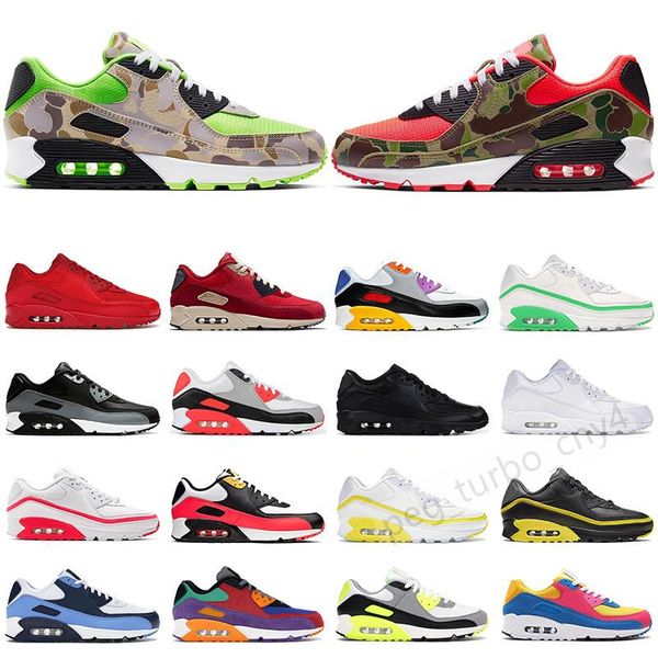 new 90 mens running shoes women trainers reverse duck camo infrared university red bred unc cool grey men breathable sports sneakers 36-45