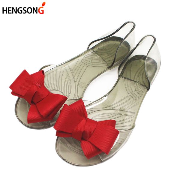 2018 summer water shoes with big bowknot open toe flat beach sandals women outdoor shoes jelly beach sneakers