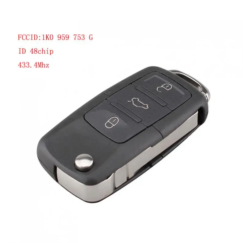 Пульт-ключ дистанционного управления для гольф-Jetta- Tiguan- Sirocco Caddy Touran, 433 МГц, 3 кнопки, неразрезанный, с чипом ID48