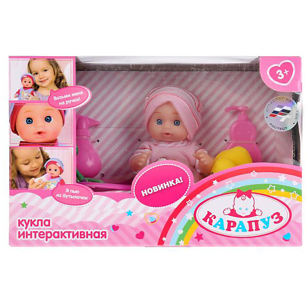 Пупс 15 см "3 функции", пьет и писает, в ванночке, с аксессуарами, Карапуз