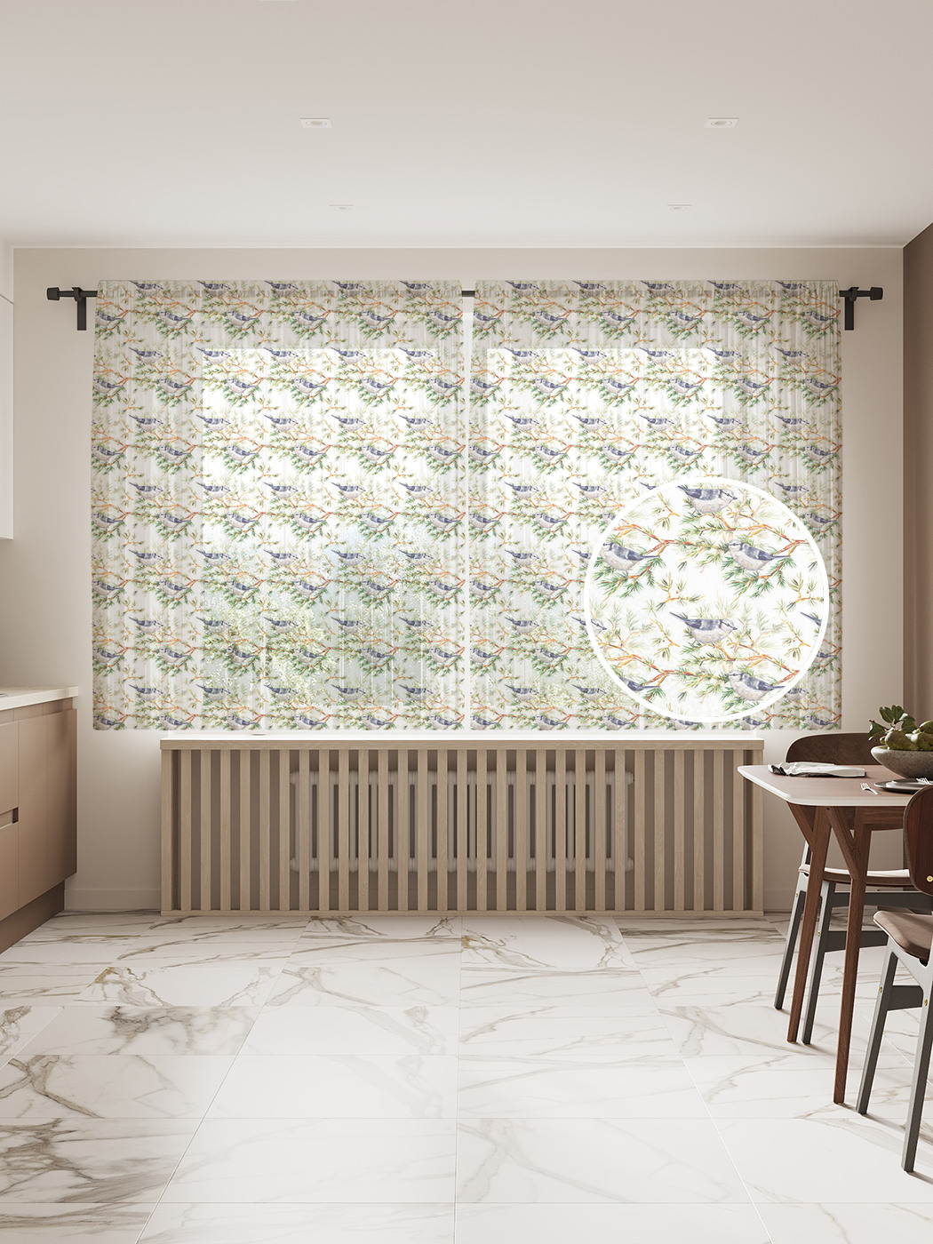 Фототюль JoyArty "Зимняя птичка", 145x180 см (2 полотна со шторной лентой + 50 крючков), Зимняя птичка