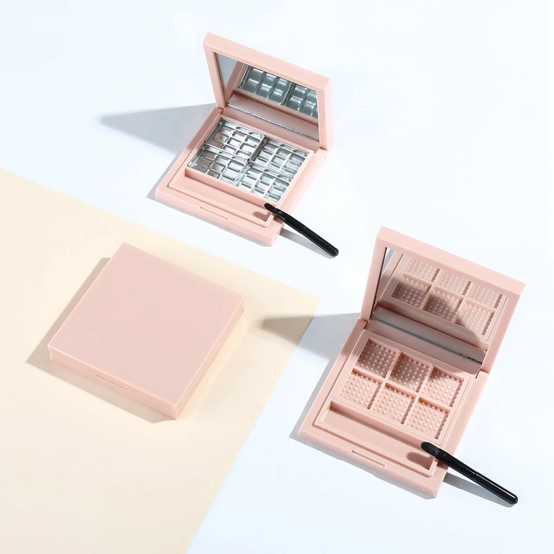 Пустая тарелка для теней, 4/6 ячеек, палитра для макияжа с зеркалом и кисточкой, для консилера, искусственная объемная коробка для хранения пудры