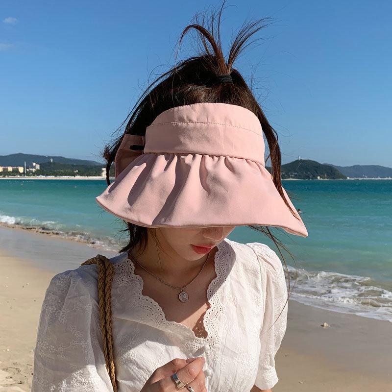 Пустая шляпа от солнца с открытым верхом женская летняя защита фиолетовая полоска шляпа от солнца с широкими полями и бантом панама хлопковая можно завязать хвостик розовый