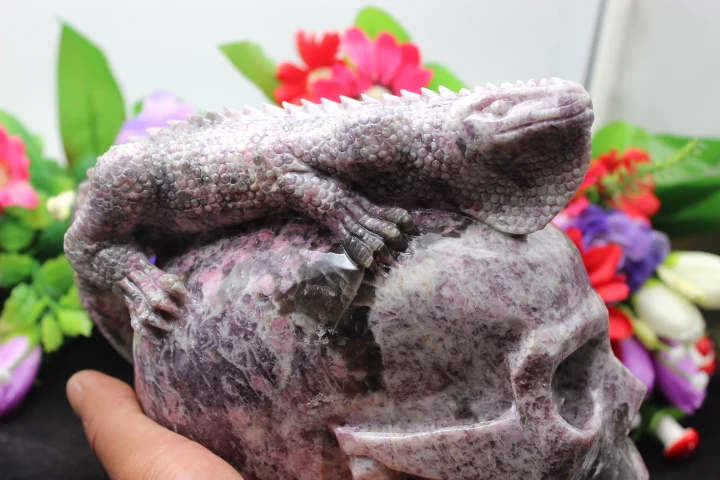 AAAAAA++++Natural red tourmaline healing home decoration carving skull lizard++++base
