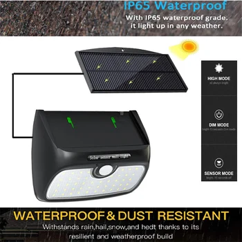 LED Solar Light Garden Motion Sensor Outdoor Waterproof Panel Power s Separate Security Street Path Wall Lamp