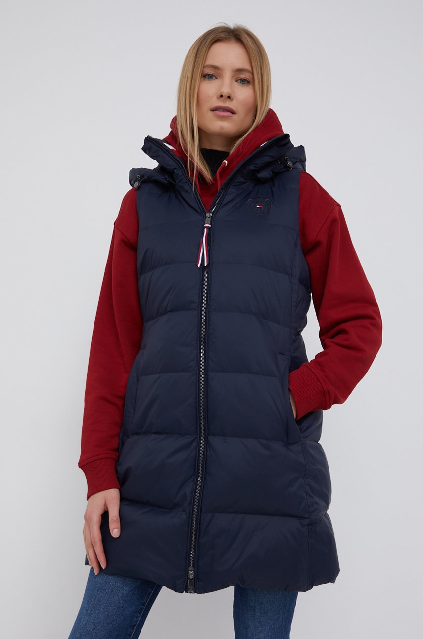 Пухен елек Tommy Hilfiger дамски в тъмносиньо със зимна изолация, Тъмносин