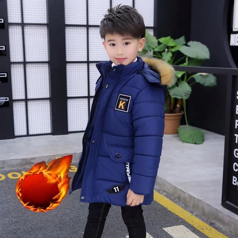 Пуховик для мальчиков, пальто, хлопок 2023, синяя теплая, утолщенная, зимняя, большого размера, детская одежда 130 темно-синий