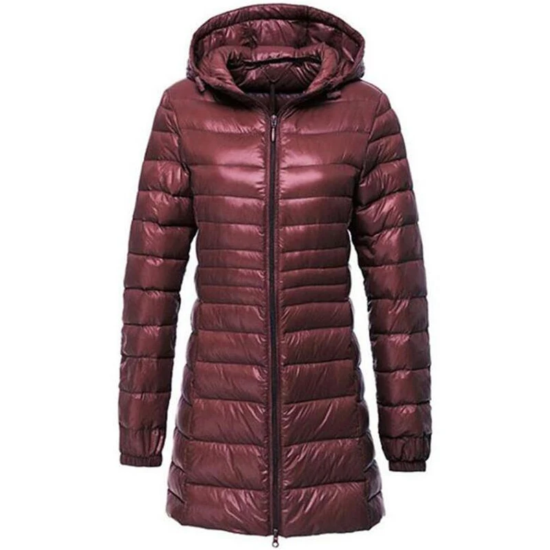 Пуховик женский осенний, теплый, длинный, ультралегкий, с капюшоном, батальных размеров 5XL, 6XL, 7XL