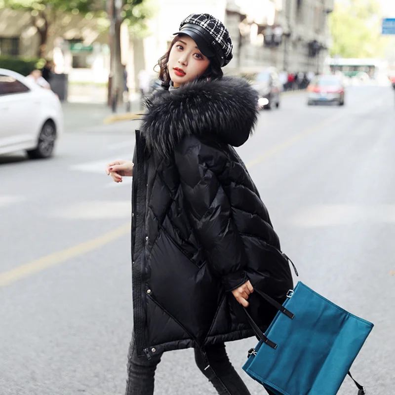 Пуховик женский средней длины, зимняя новая корейская мода, искусственный маленький утолщенный пуховик на белом утином пуху