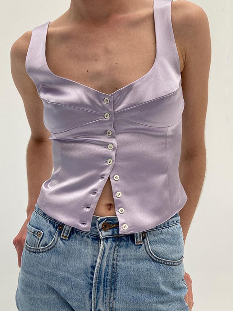 Women' Tanks Giyu Satin Buttuons Camis Women' Slim Tank Tops Sleeveless Backless Solid Crop Top Female Cropped Sexy High Street, Purple