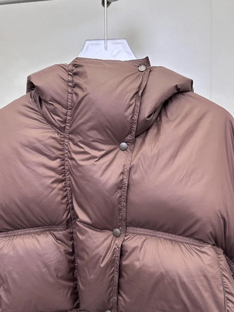 Пуховик с капюшоном и завышенной талией, однотонный однобортный теплый и удобный пуховик, новинка зимы 2023