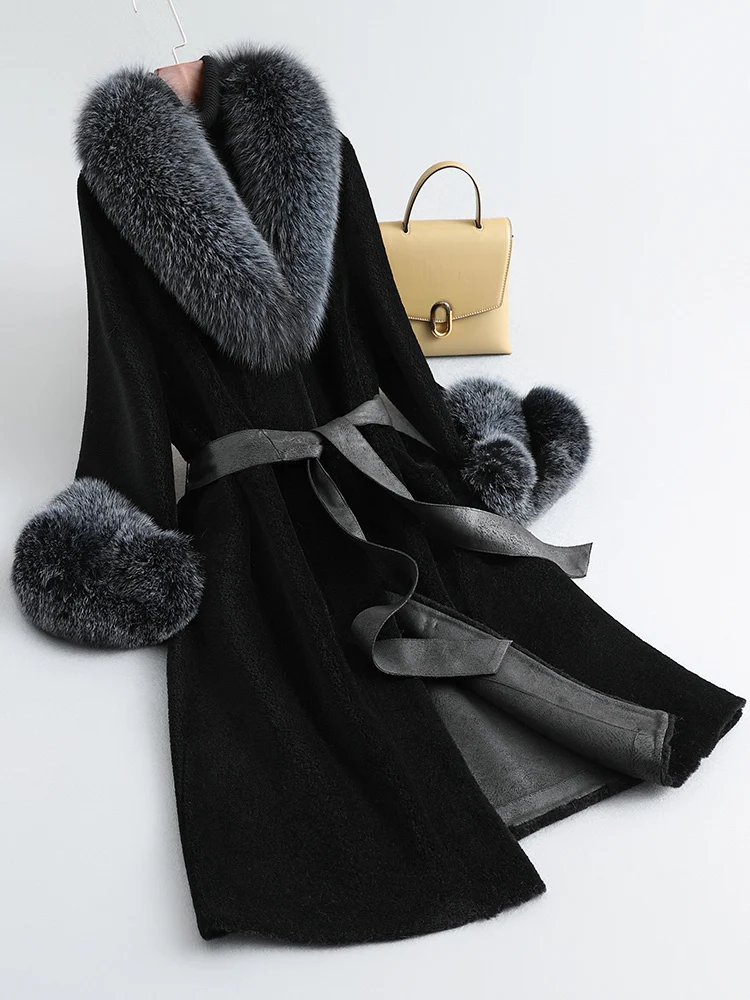Пуховик с овчиной для женщин, пуховик средней длины, мех ягненка, меховой воротник