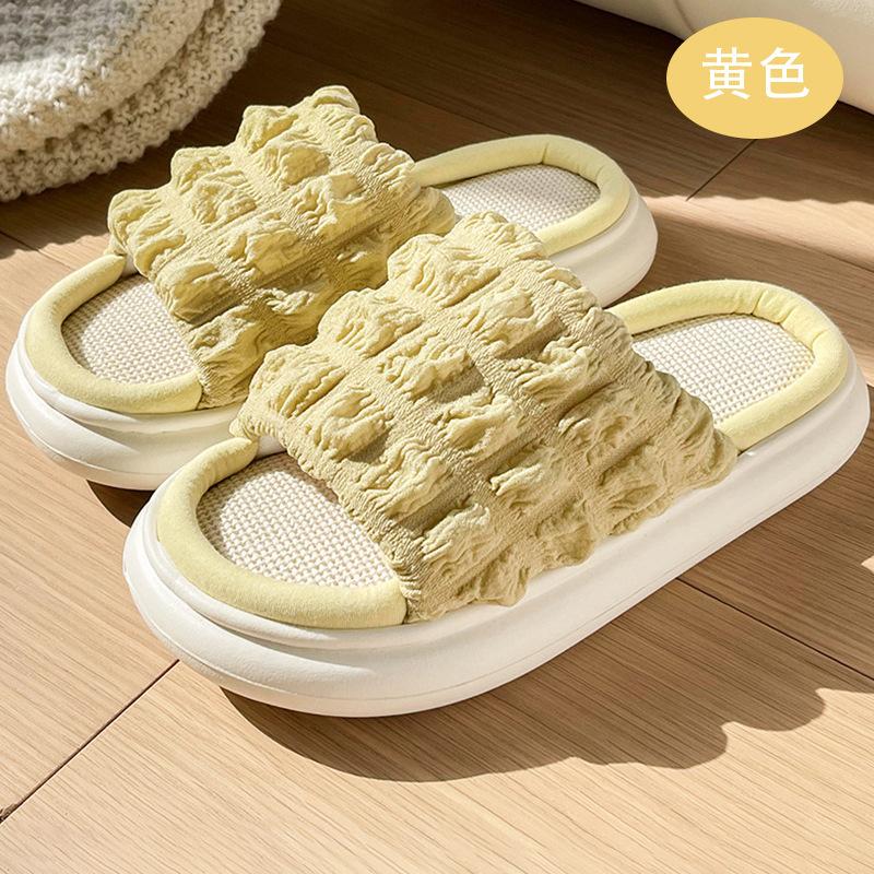 Пушистые льняные тапочки четыре сезона толстая подошва домашние тканевые сандалии для дома комнатные парные хлопково-льняные тапочки женские 40-41 жёлтый