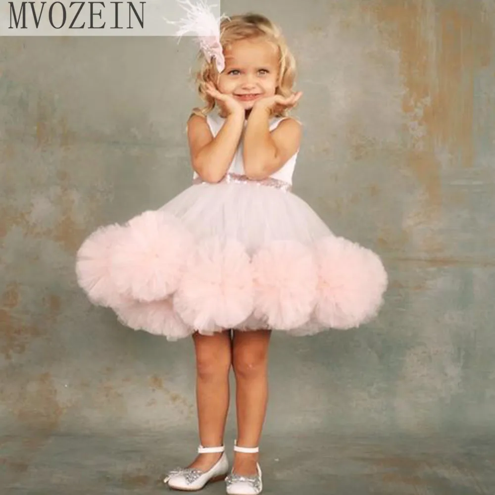 Пышная Цветочная бальная юбка, платья для девочек, детские блестящие платья с цветочным поясом для девочек, фатиновая юбка, детское платье для причастия, бальное платье
