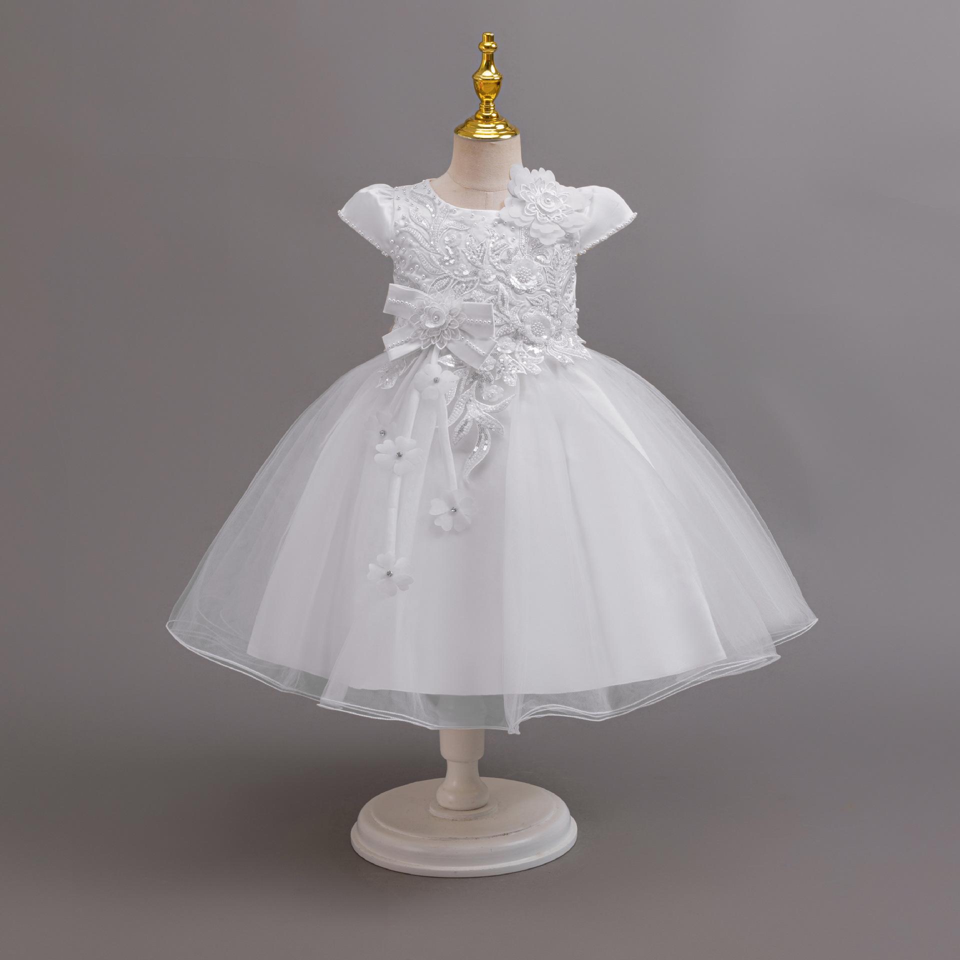 Пышное свадебное платье с кружевным цветком Платье принцессы для девочки-модели Платье для подиума для девочки-цветочницы 150 белый