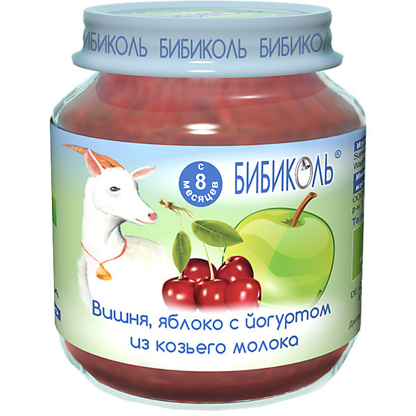 Пюре Бибиколь вишня, яблоко с йогуртом из козьего молока с 8 мес, 6 шт по 125 г